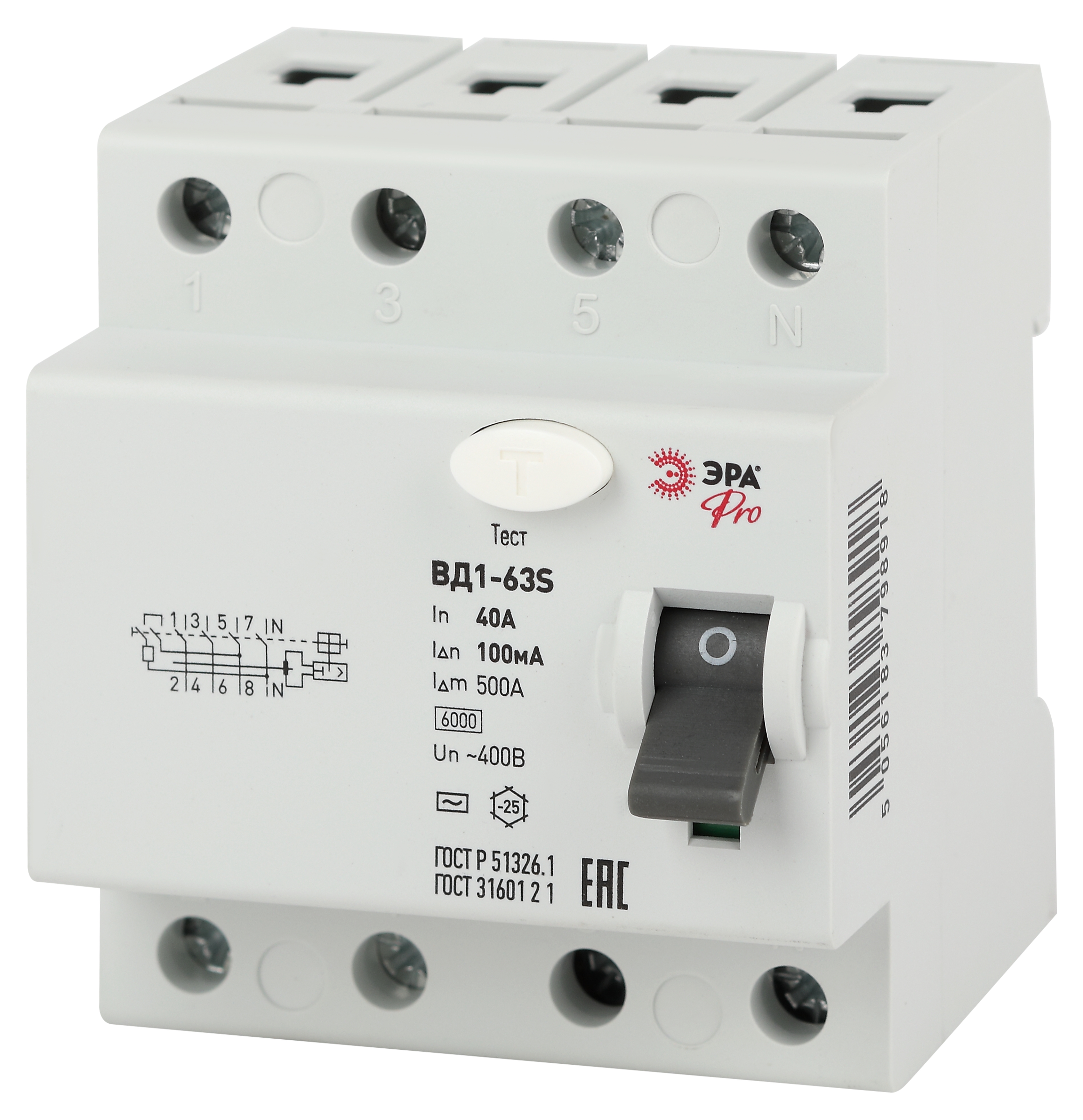 Устройство защитного отключения (УЗО) 4p 40А 100мА AC 6кА с селективной защитой ЭРА _