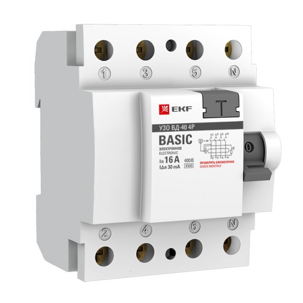 Устройство защитного отключения ВДТ-40 4P 63А 300мА электронное EKF Basic /1