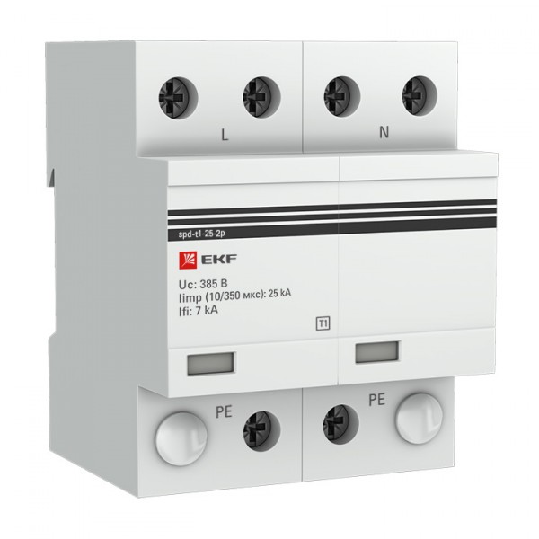 УЗИП Тип 1 (класс 1) применяются для защиты от больших импульсных перенапряжений (удар молнии, мощный бросок напряжения в режиме КЗ). Устанавливаются в местах возможного прямого попадания молнии в ВЛ электропитания или в качестве 1-ой ступени защиты в системе внешней молниезащиты объекта. Испытание и нормирование УЗИП класса I осуществляется импульсным током Iimp – 10/350 мкс, номинальным разрядным током In – 8/20 мкс, импульсным напряжением – 1,2/50 мкс. Устанавливаются УЗИП класса 1 к примеру, в щит учета на опоре, снаружи дома (до счетчика), в главном распределительном щите объекта (ГРЩ) или во вводном-распределительном устройстве (ВРУ).