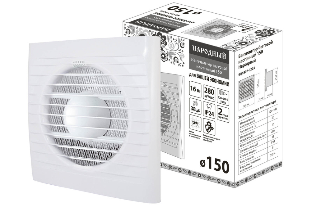 Применение:Санузлы, ванные комнаты, кухни.Общественные помещения. Преимущества:Надежный двигатель с низким энергопотреблением.Встроенная защита двигателя от перегрева.Защитная сетка от насекомых в комплекте.Комфортный уровень шума достигается за счёт специальной конструкции крылчатки и корпуса.Современный дизайн и эстетичный внешний вид.Назначение:Организация вытяжной вентиляции бытовых и общественных помещений.Для монтажа в вентиляционные шахты или соединения с воздуховодами.Перемещение малой и средней величины потока воздуха на небольшие расстояния при малом сопротивлении вентиляционной системы. Конструкция:Для монтажа с воздуховодами 100, 120, 150 мм и квадратными отверстиями соответствующих размеров.Материал корпуса: полипропилен.Конструкция крыльчатки позволяет повысить производительность вентилятора и срок службы двигателя.Крепится к стене при помощи шурупов (в комплекте). 0: