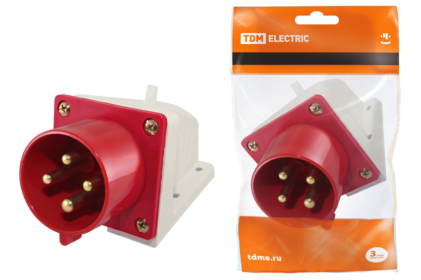 Вилка 514 стационарная 3Р+РЕ 16А 380В IP44 TDM /1/10