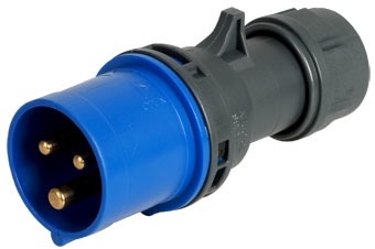 Вилка CEE, VDE 0623, EN 60309, IEC 60309, ввод кабеля 1 x сверху 6 - 15 мм, степень защиты IP44, брызгозащищенное исполнение, номинальный ток 16 А, 3-пол., номинальное напряжение 230 В AC, 6 ч, син., винтовые зажимы, система быстрого монтажа (turn2fix), все вилки также имеются с никелированными контактами
