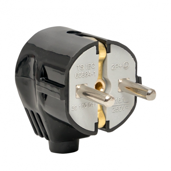 Вилка угловая усиленная с/з черная 16А 250В EKF Proxima EKF