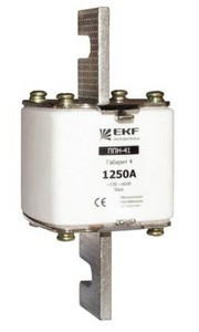 Плавкая вставка ППН-41 1250/ 630А габарит 4 EKF. Предохранители плавкие ППН EKF, укомплектованные плавкими вставками типа gG/gL, предназначаются для защиты кабельных линий и промышленных электроустановок от токов перегрузки и короткого замыкания. Предохранители применяются в электрических сетях переменного тока частотой 50 Гц с напряжением до 660В. Применяются для крепления в распределительных и вводно-распределительных устройствах. Предохранители плавкие ППН могут устанавливаться в основание с держателем, а также в специально предназначенные рубильники. В комплект поставки предохранителей плавких ППН основание с держателем не входит и приобретается отдельно.