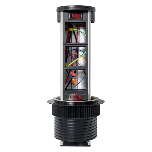 Встраиваемая мини-колонна с беспроводной зарядкой 15 Вт, 6 модулей C-Line. Встраиваемая мини-колонна с беспроводной зарядкой – это изделие цилиндрической формы с ручным выдвижным механизмом, предназначенное для установки ЭУИ стандарта 45х45. Верхняя крышка мини-колонны оснащена беспроводной зарядкой для электронных девайсов. Беспроводное зарядное устройство считывает данные с контроллера питания подключенного девайса и подбирает оптимальные и безопасные выходные параметры тока и напряжения. Изделие поставляется в комплекте с сетевым кабелем питания (2 метра). В нижней крышке колонны предусмотрены 2 дополнительных кабельных ввода. Монтаж производится в предварительно подготовленное отверстие диаметром Ø95-100 мм. Допустимая толщина поверхности стола 10-45 мм.