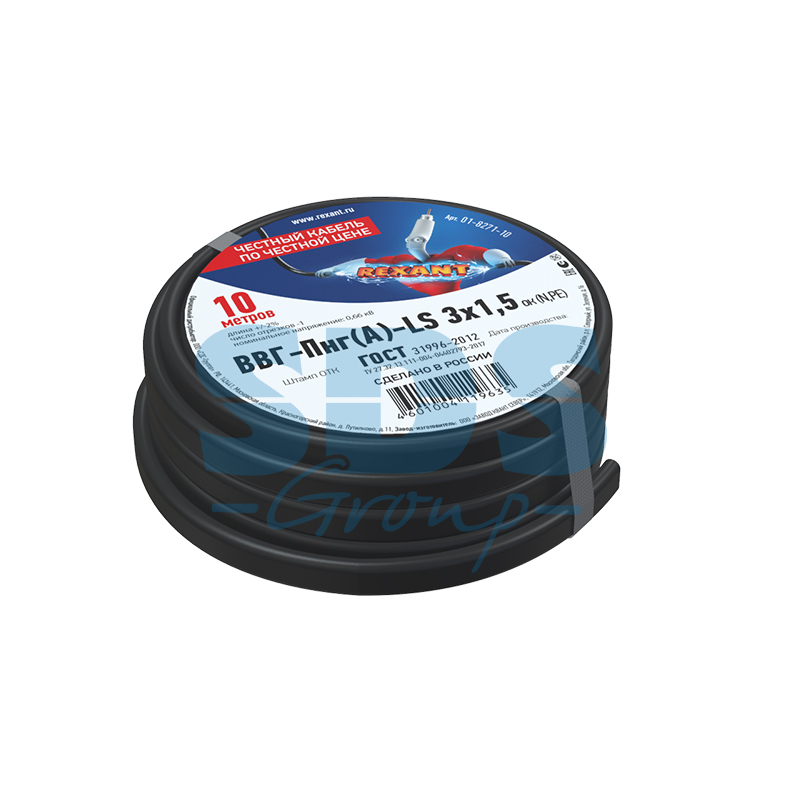 Кабель REXANT ВВГ-Пнг(А)-LS 3x1,5 ГОСТ бухта 10 м.