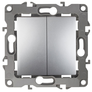 Выкл 2-клавиш. мех-м с накладкой 10А 250В с/у алюминий матовый декор d 1/1 IP20 ЭРА 12