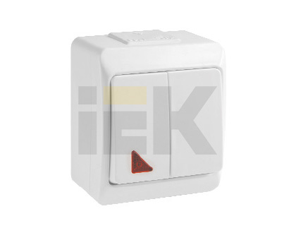 Выкл 2-клавиш. с подсветкой в сборе 10А 250В о/у белый глянц. IP44 IEK ГЕРМЕС