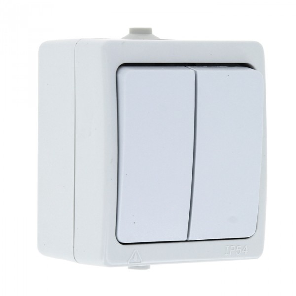 Выкл. 2х полюс. 2-клавиш. в сборе 10А 230В о/у белый глянц. IP54 EKF PROxima