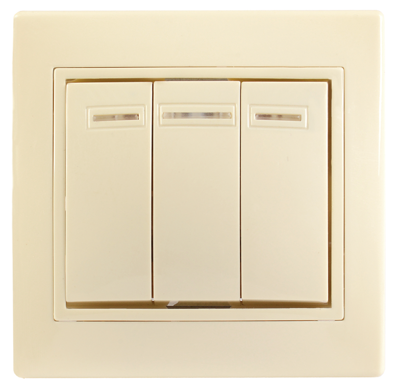 Выкл 3-клавиш. с подсветкой в сборе 10А 250В с/у бежевый глянц. IP20 IEK КВАРТА