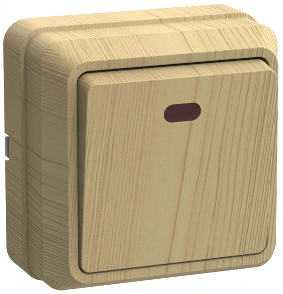 Выключатель 1-клавишный 10А с индикатором открытая установка светлое дерево EKF Минск