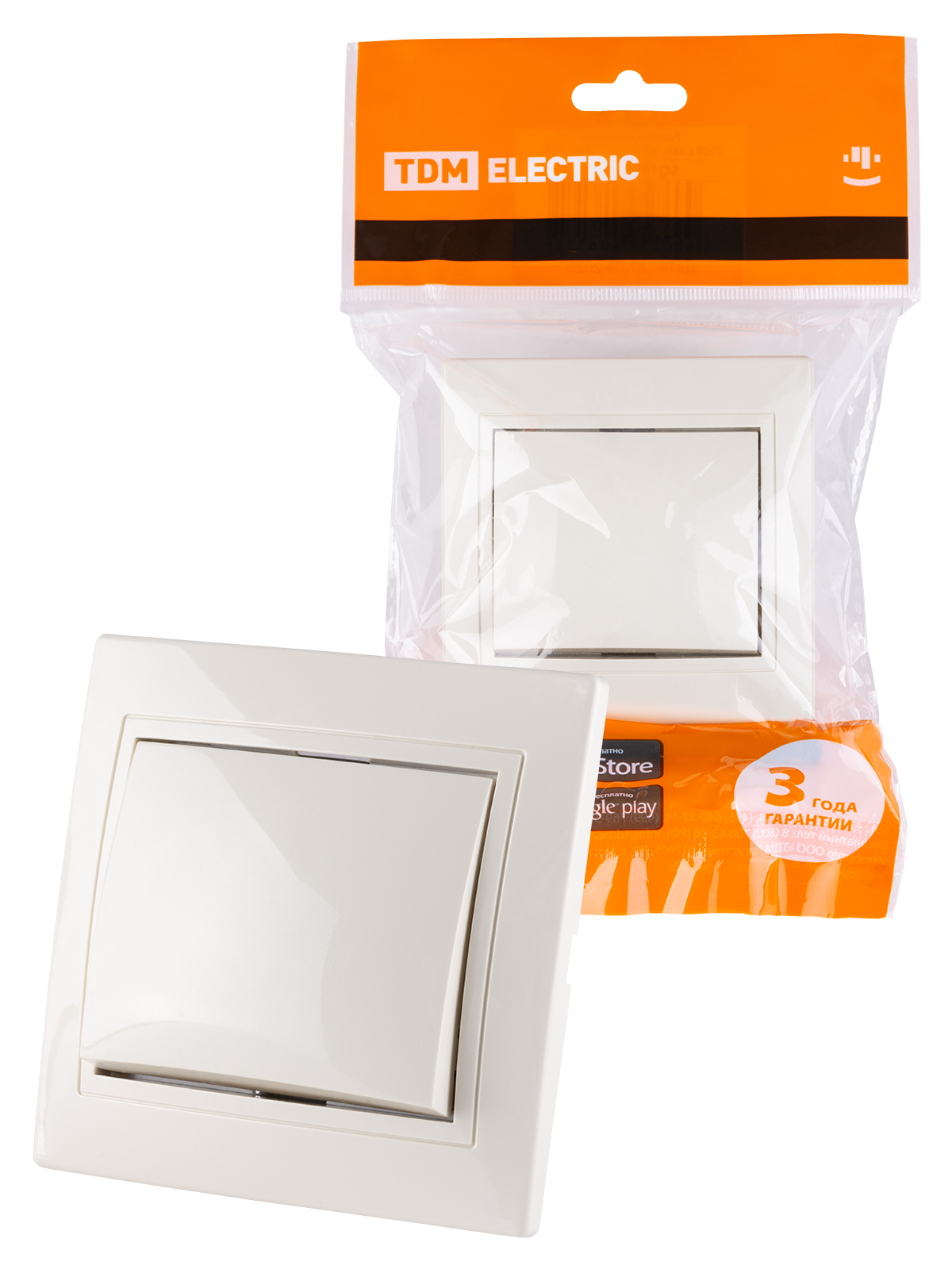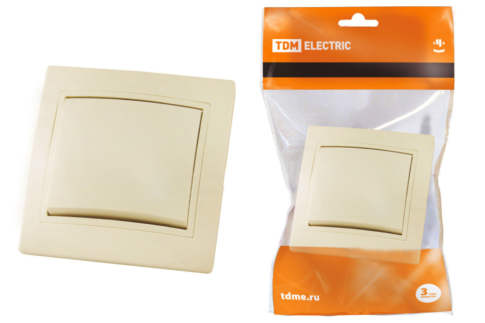 Выключатель 1-клавишный 10А слоновая кость TDM Таймыр