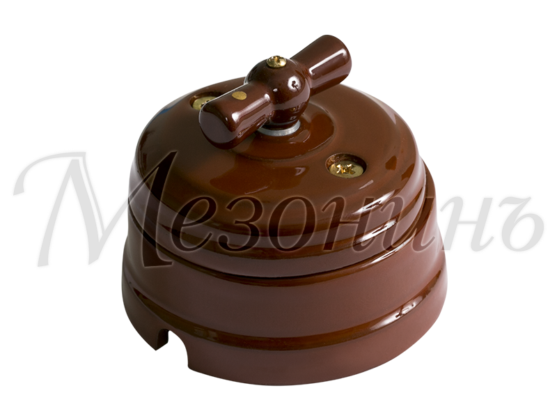 Выключатель 1-клавишный фарфоровый поворот на два положения для включения из двух мест с подъемной рамкой D70x60), коричневый
