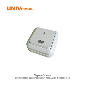 Выключатель 1-клавишный проходной с подсветкой белый UNIVersal ОЛИМП