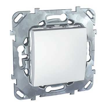 Выключатель одноклавишный Schneider Electric UNICA (белый) без подсветки предназначен для сетей до 250 В на ток до 10 А.- 1 нормально открытый контакт.