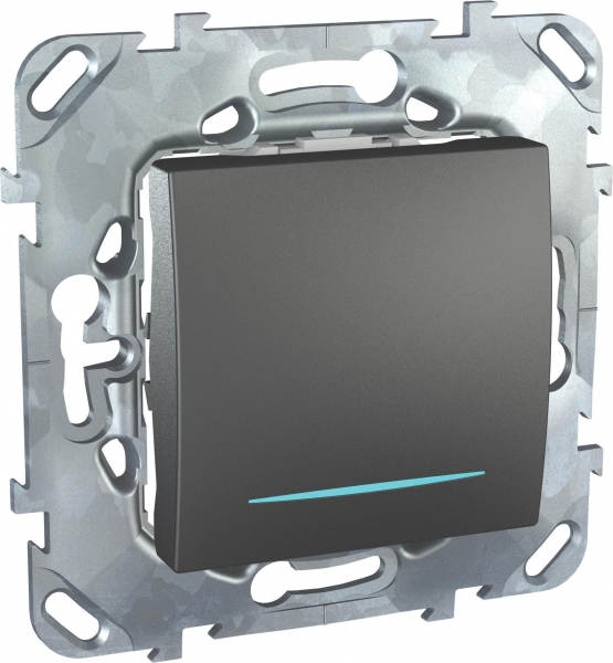 Выключатель одноклавишный Schneider Electric UNICA TOP (графит) с подсветкой предназначен для сетей до 250 В на ток до 10 А.- 1 нормально открытый контакт.