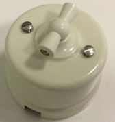 Изготовлен из высокопрочного пластика, устойчивого к истиранию. Оснащен поворотным переключателем вместо клавиши. Применяется с открытой проводкой, хорошо сочетается с текстильным кабелем. При необходимости может использоваться и при монтаже скрытой электропроводки.