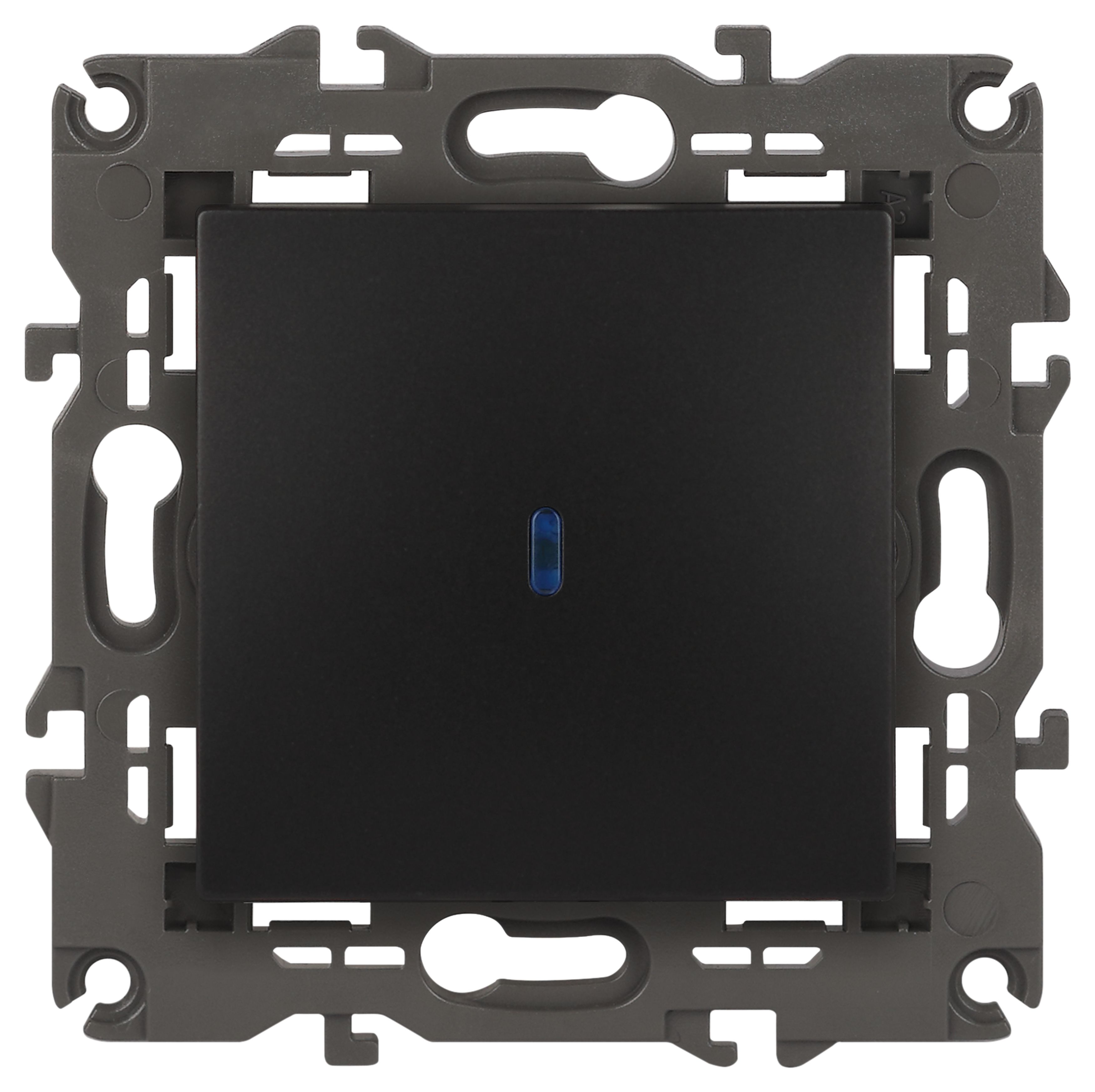 Выключатель 1-клавишный подсветка Эра Elegance антрацит 14-1102-05. Оснащён автоматическими клеммами для надёжной фиксации жил кабеля в механизме. Рамки приобретаются отдельно.