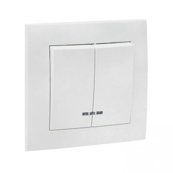 Выключатель 2-клавишный 10А с индикатором Белый EKF PROxima Валенсия