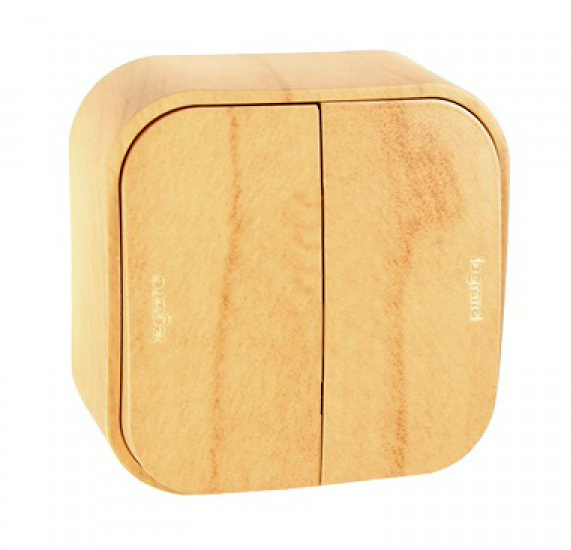 Выключатель двухклавишный - Legrand Quteo - IP20 10А 250В винтовые зажимы накладной монтаж - дерево