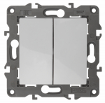 Выключатель 2-клавишный Эра Elegance белый 14-1104-01. Оснащён автоматическими клеммами для надёжной фиксации жил кабеля в механизме. Рамки приобретаются отдельно. Рамки Эра Elegance ПЛАСТИК: 1 пост 14-5001-хх, 2 поста 14-5002-хх, 3 поста 14-5003-хх, 4 поста 14-5004-хх, 5 постов 14-5005-хх; СТЕКЛО: 1 пост 14-5101-хх, 2 поста 14-5102-хх, 3 поста 14-5103-хх, 4 поста 14-5104-хх; МЕТАЛЛ: 1 пост 14-5201-хх, 2 поста 14-5202-хх, 3 поста 14-5203-хх, 4 поста 14-5204-хх; ДЕРЕВО: 1 пост 14-5301-хх, 2 поста 14-5302-хх, 3 поста 14-5303-хх, 4 поста 14-5304-хх (хх - код цвета: 00-прозрачный, 01-белый, белёный дуб, 02-слоновая кость, 03-алюминий, 04-шампань, 05-чёрный, чёрное дерево, 07-ясень, 09-дуб, 10-венге, 11-клён, 14-медь, 21-жёлтый, 22-оранжевый, 23-красный, 25-бордо, 26-лайм, 27-зелёный, 28-голубой, 29-синий, 30-розовый, 31-мокко, 32-серый, 41-сталь, 42-титан).