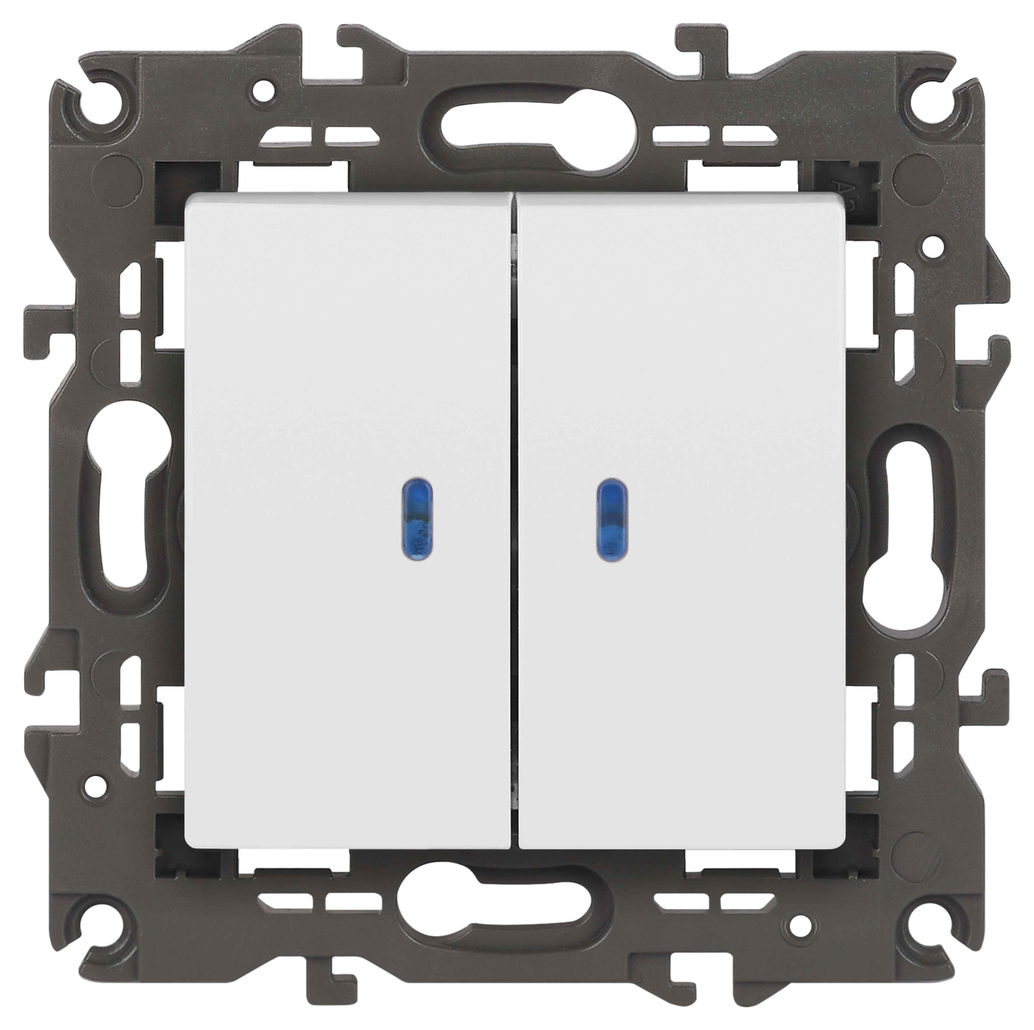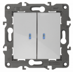 Выключатель 2-клавишный подсветка Эра Elegance белый 14-1105-01. Оснащён автоматическими клеммами для надёжной фиксации жил кабеля в механизме. Рамки приобретаются отдельно. Рамки Эра Elegance ПЛАСТИК: 1 пост 14-5001-хх, 2 поста 14-5002-хх, 3 поста 14-5003-хх, 4 поста 14-5004-хх, 5 постов 14-5005-хх; СТЕКЛО: 1 пост 14-5101-хх, 2 поста 14-5102-хх, 3 поста 14-5103-хх, 4 поста 14-5104-хх; МЕТАЛЛ: 1 пост 14-5201-хх, 2 поста 14-5202-хх, 3 поста 14-5203-хх, 4 поста 14-5204-хх; ДЕРЕВО: 1 пост 14-5301-хх, 2 поста 14-5302-хх, 3 поста 14-5303-хх, 4 поста 14-5304-хх (хх - код цвета: 00-прозрачный, 01-белый, белёный дуб, 02-слоновая кость, 03-алюминий, 04-шампань, 05-чёрный, чёрное дерево, 07-ясень, 09-дуб, 10-венге, 11-клён, 14-медь, 21-жёлтый, 22-оранжевый, 23-красный, 25-бордо, 26-лайм, 27-зелёный, 28-голубой, 29-синий, 30-розовый, 31-мокко, 32-серый, 41-сталь, 42-титан).