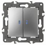 Выключатель 2-клавишный 10АХ 250В IP20 с подсветкой алюминий 14-1105-03 ЭРА Elegance