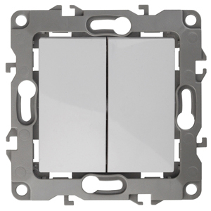 Выключатель 2-клавишный серии Эра 12 скрытой установки механизм цвет белый 12-1104-01. Номинальные характеристики 10А 250В . Сделан из поликарбоната, оснащёно автоматическими клеммами для быстрй и надёжной фиксации жил кабеля в механиме. Парные клеммы обеспечивают соединение шлейфом. Монтаж в подрозетник производится и на лапки, и на винты. Рамки приобретаются отдельно. Рамки Эра 12: 1 пост 12-5001-хх, 2 поста 12-5002-хх, 3 поста 12-5003-хх, 4 поста 12-5004-хх, 5 постов 12-5005-хх. Рамки Эра 12 Сатин: 1 пост 12-5101-хх, 2 поста 12-5102-хх, 3 поста 12-5103-хх, 4 поста 12-5104-хх, 5 постов - 12-5105-хх (хх - код цвета: 01-белый, 02-слоновая кость, 03-алюминий, 04-шампань, 05-антрацит, 06-чёрный, 07-ольха(белёный дуб-сатин), 08-вишня, 09-дуб, 10-венге, 11-сосна, 21-жёлтый, 22-оранжевый, 23-красный, 24-охра, 25-бордо, 26-лайм, 27-зелёный, 28-голубой, 29-синий).