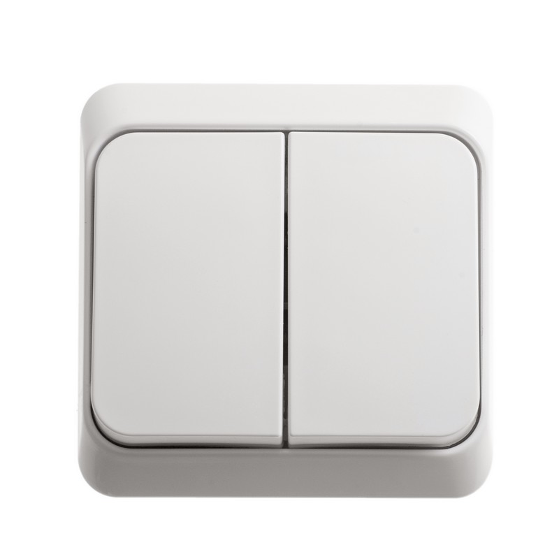 Выключатель Systeme Electric (ранее Schneider Electric) ЭТЮД (белый, открытой установки) двухклавишный предназначен для применения в сетях до 250В, на ток до 10А. Две клавиши позволяют управлять двумя источниками света с одной точки. Он прост в установке и удобен применении. Сделано в России.