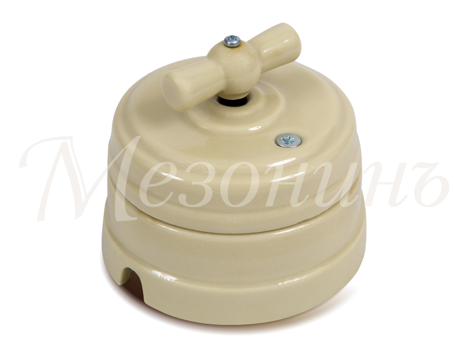 Двухклавишный фарфоровый ретро поворотный выключатель на 4 положения для скрытой и открытой проводки, для управления с 2 группами освещения. Размер: D70х60мм ; Характеристики: 10А, 250В, IP 20
