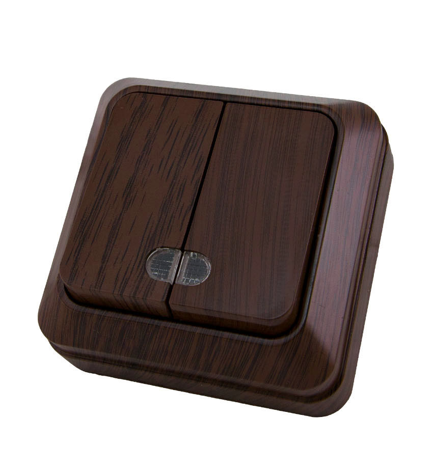 Выключатель 2-клавишный IP20 10А открытой установки с подсветкой бук TDM Ладога
