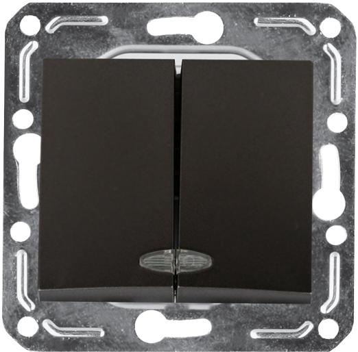 Выключатель 2-клавишный с индикатором механизм Magenta Volsten V01-14-V22-M Nero 10/120
