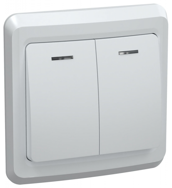 Выключатель 2-клавишный с индикатором скрытая установка Белый 10А EKF Basic Минск 10/200