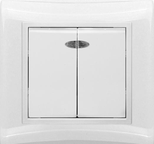 Выключатель 2-клавишный с индикатором в сборе белый Volsten V01-21-V22-S Violet 10/120