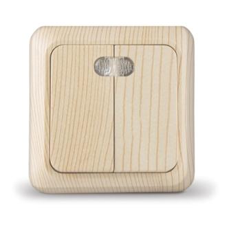 Выключатель 2-клавишный с подсветкой 10А 220В открытая установка сосна UNIVersal Олимп 10/100