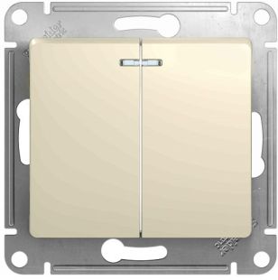 Механизм Systeme Electric (ранее Schneider Electric) серии Glossa (цвет молочный) выключателя 2-клавишного с подсветкой подходит для сетей 250 В, на ток 10 А. Благодаря современной светодиодной подсветке зеленого цвета изделие легко найти в темноте. Двухклавишный выключатель позволяет управлять двумя источниками света с одной точки. Выполнен из материала PС+ASA, стойкого к УФ-излучению и появлению царапин. Эргономичные клеммы расположены в два ряда: сверху и снизу.