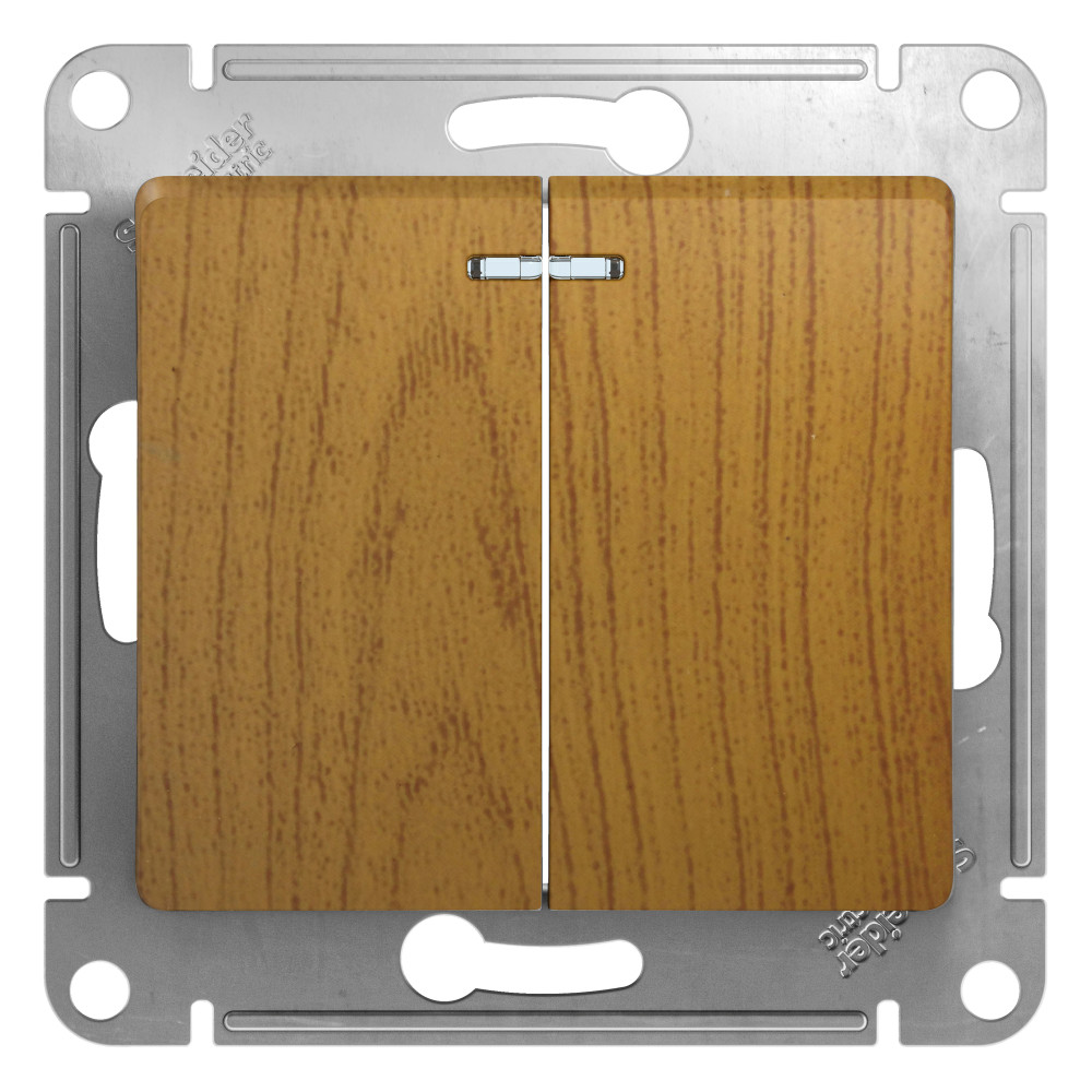Механизм Systeme Electric (ранее Schneider Electric) серии Glossa (цвет дерево дуб) выключателя 2-клавишного c подсветкой подходит для сетей 250 В, на ток 10 А.- Благодаря современной светодиодной подсветке зеленого цвета изделие легко найти в темноте.