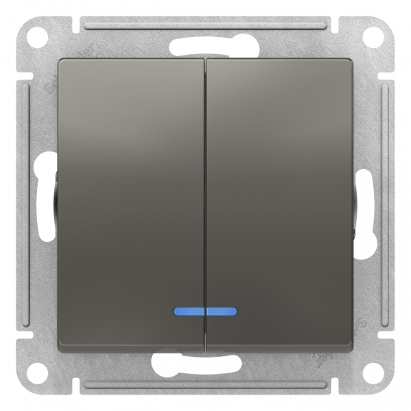 Механизм Systeme Electric (ранее Schneider Electric) серии AtlasDesign в цвете сталь выключателя 2-клавишного c подсветкой подходит для сетей 250 В, на ток 10 А. Благодаря светодиодной подсветке синего цвета изделие легко найти в темноте. Двухклавишный выключатель позволяет управлять двумя источниками света с одной точки. Лицевые детали из качественного ABS-пластика, устойчивого к царапинам и УФ-излучению. Усиленные прямые монтажные лапки для лучшей фиксации механизма в монтажной коробке.