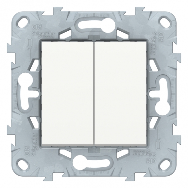 Выключатель двухклавишный Schneider Electric UNICA NEW (белый) без подсветки предназначен для сетей до 250 В на ток до 10 А.- 2 нормально открытых контакта.