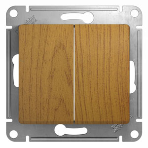 Механизм Systeme Electric (ранее Schneider Electric) серии Glossa (цвет дерево дуб) выключателя 2-клавишного подходит для сетей 250 В, на ток 10 А. Двухклавишный выключатель позволяет управлять двумя источниками света с одной точки. Выполнен из материала PС+ASA, стойкого к УФ-излучению и появлению царапин. Эргономичные клеммы расположены в два ряда: сверху и снизу.