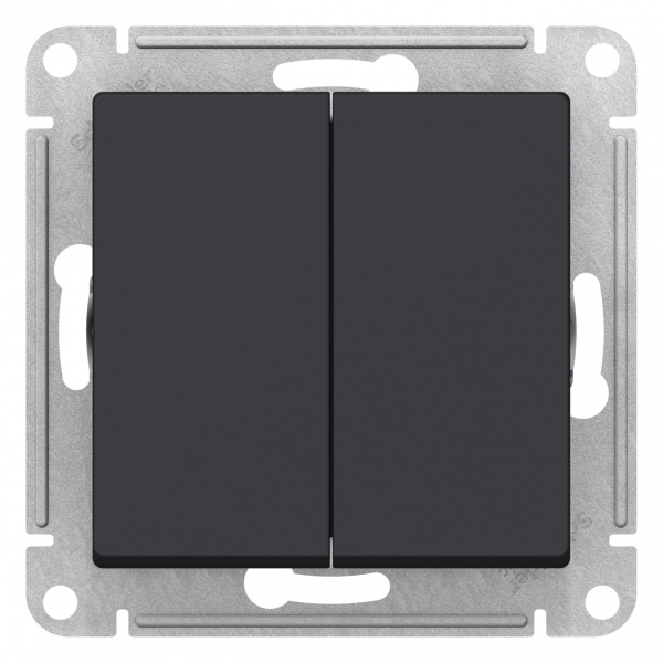 Механизм выключателя 2-клавишного Systeme Electric (ранее Schneider Electric) серии AtlasDesign в цвете карбон подходит для сетей 250 В, на ток 10 А. Двухклавишный выключатель позволяет управлять двумя источниками света с одной точки. Лицевые детали из качественного ABS-пластика, устойчивого к царапинам и УФ-излучению. Благодаря покрытию «soft touch» к изделию приятно прикасаться.
