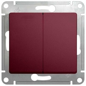 Механизм Systeme Electric (ранее Schneider Electric) серии Glossa (цвет баклажановый) выключателя 2-клавишного подходит для сетей 250 В, на ток 10 А. Двухклавишный выключатель позволяет управлять двумя источниками света с одной точки. Выполнен из материала PС+ASA, стойкого к УФ-излучению и появлению царапин. Эргономичные клеммы расположены в два ряда: сверху и снизу.