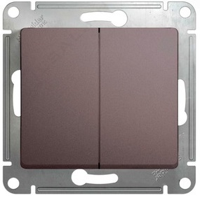 Механизм Systeme Electric (ранее Schneider Electric) серии Glossa (цвет платина) выключателя 2-клавишного подходит для сетей 250 В, на ток 10 А. Двухклавишный выключатель позволяет управлять двумя источниками света с одной точки. Выполнен из материала PС+ASA, стойкого к УФ-излучению и появлению царапин. Эргономичные клеммы расположены в два ряда: сверху и снизу.