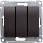 Механизм Systeme Electric (ранее Schneider Electric) серии Glossa (цвет шоколад) выключателя 3-клавишного подходит для сетей 250 В, на ток 10 А. Трёхклавишный выключатель позволяет управлять тремя источниками света из одной точки. Выполнен из материала PС+ASA, стойкого к УФ-излучению и появлению царапин. Эргономичные клеммы расположены в два ряда: сверху и снизу.