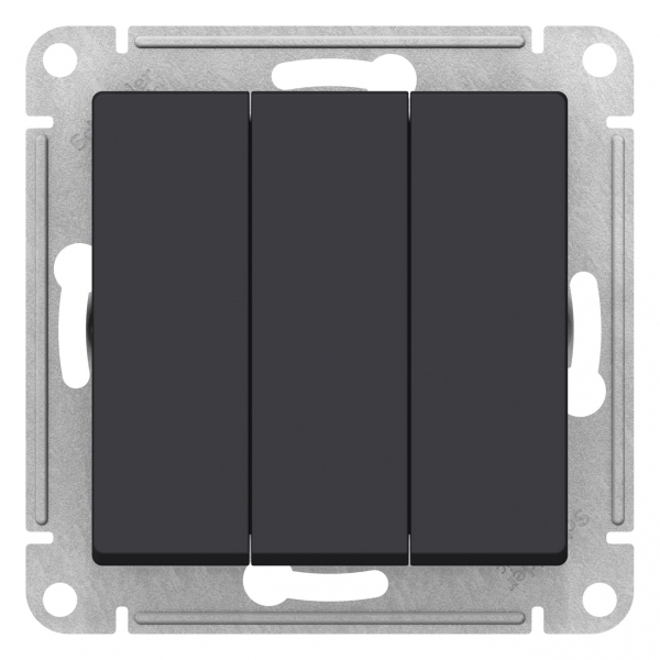Механизм Systeme Electric (ранее Schneider Electric) серии AtlasDesign в цвете карбон выключателя 3-клавишного подходит для сетей 250 В, на ток 10 А. Трёхклавишный выключатель позволяет управлять тремя источниками света из одной точки. Лицевые детали из качественного ABS-пластика, устойчивого к царапинам и УФ-излучению. Благодаря покрытию «soft touch» к изделию приятно прикасаться.