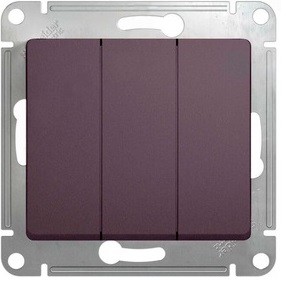 Механизм Systeme Electric (ранее Schneider Electric) серии Glossa (цвет сумеречный туман) выключателя 3-клавишного подходит для сетей 250 В, на ток 10 А.- Трёхклавишный выключатель позволяет управлять тремя источниками света из одной точки.