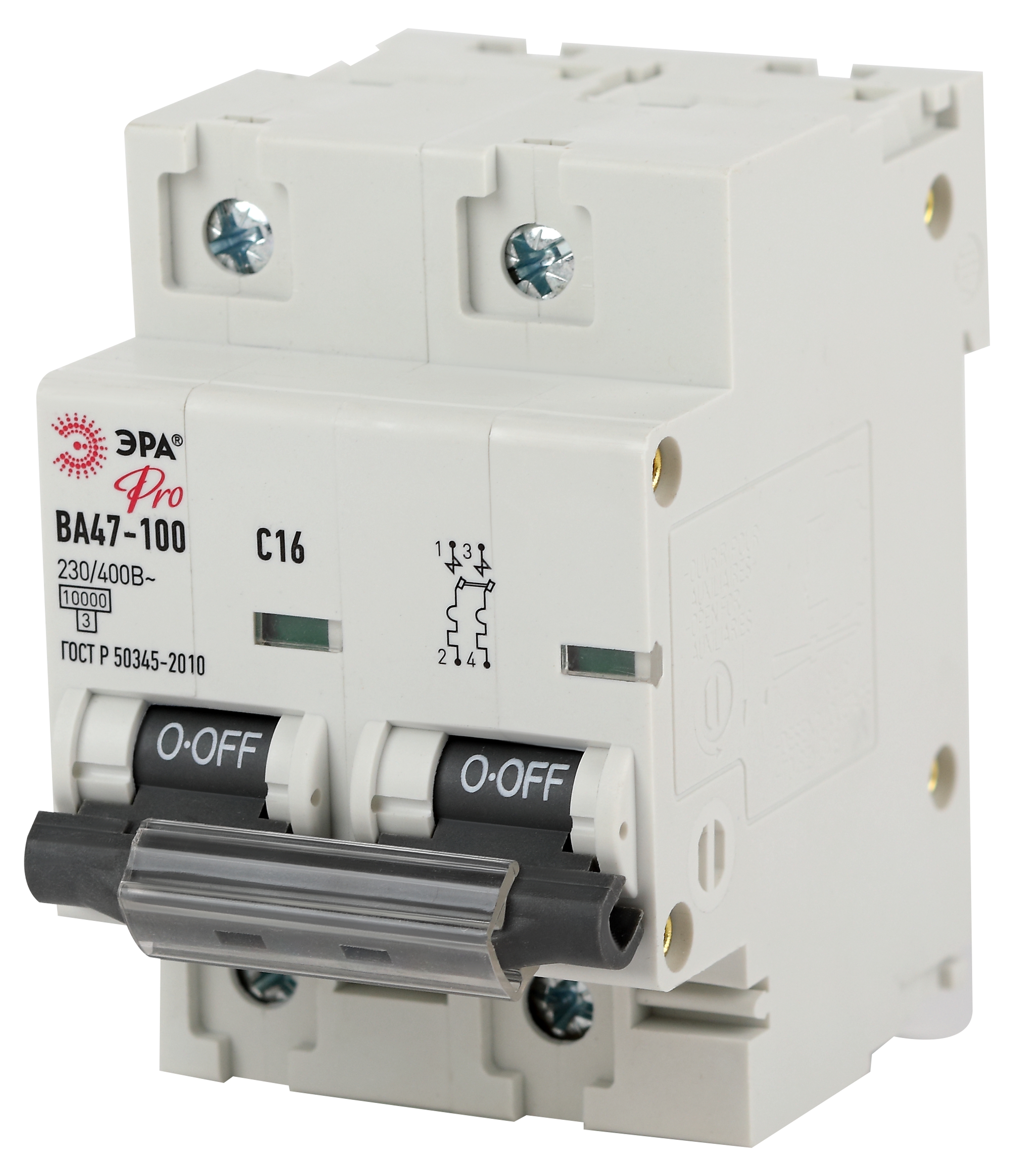 Выключатель автоматический 2-полюсный (2P) 16А хар. C ЭРА (Энергия света) Pro