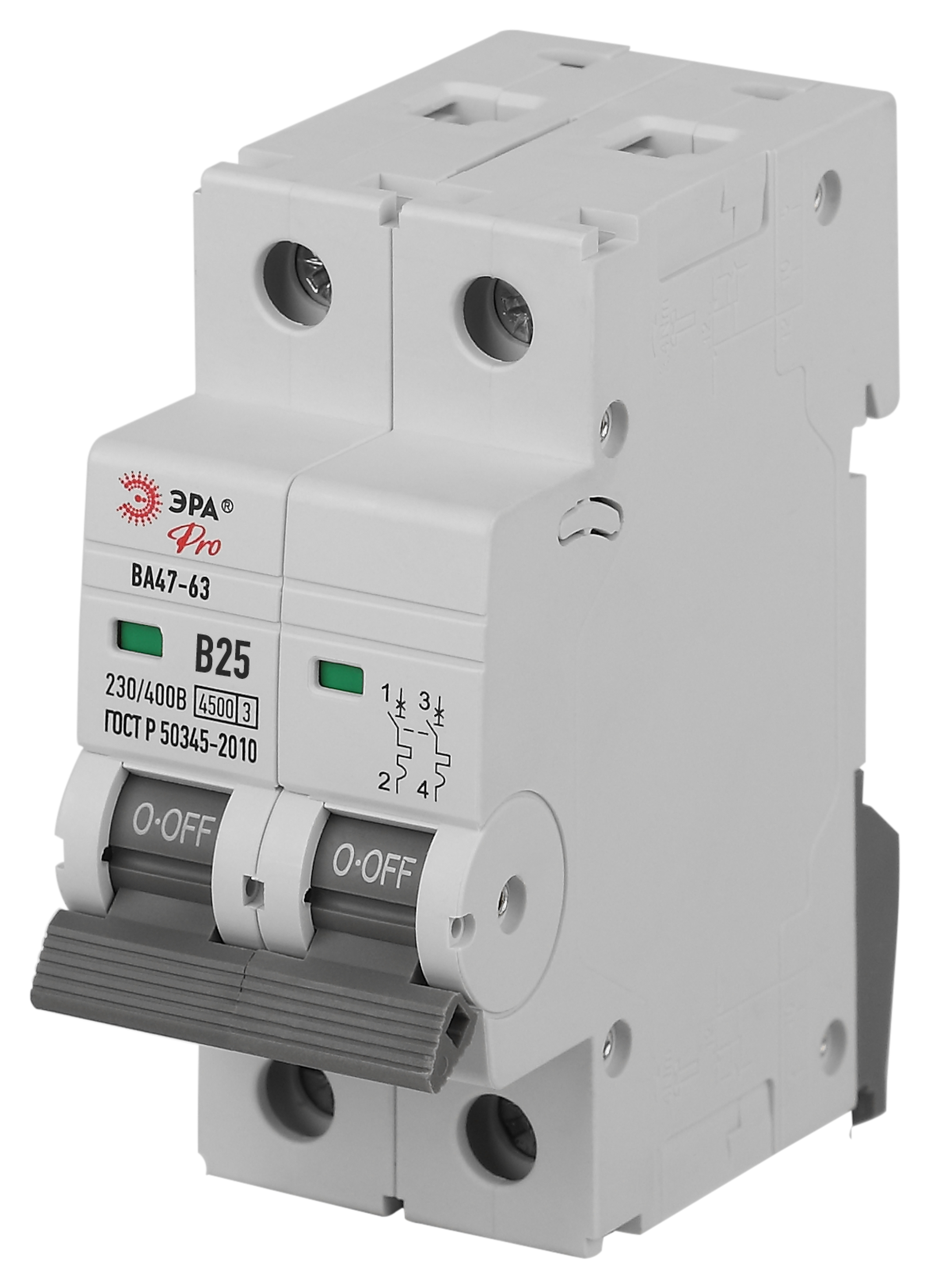 Выключатель автоматический 2-полюсный (2P) 25А хар. B 4.5кА ЭРА (Энергия света)