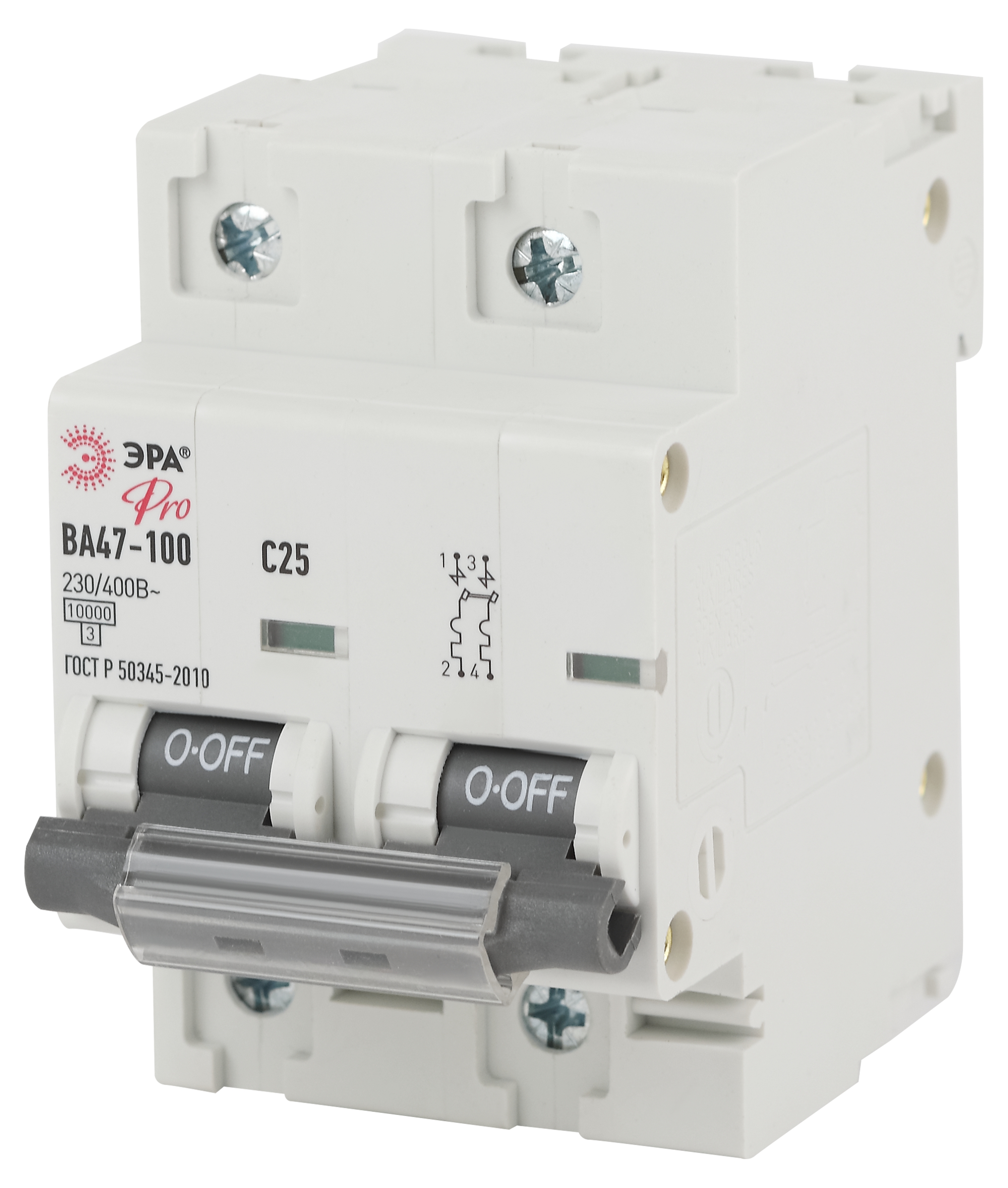 Выключатель автоматический 2-полюсный (2P) 25А хар. C ЭРА (Энергия света) Pro