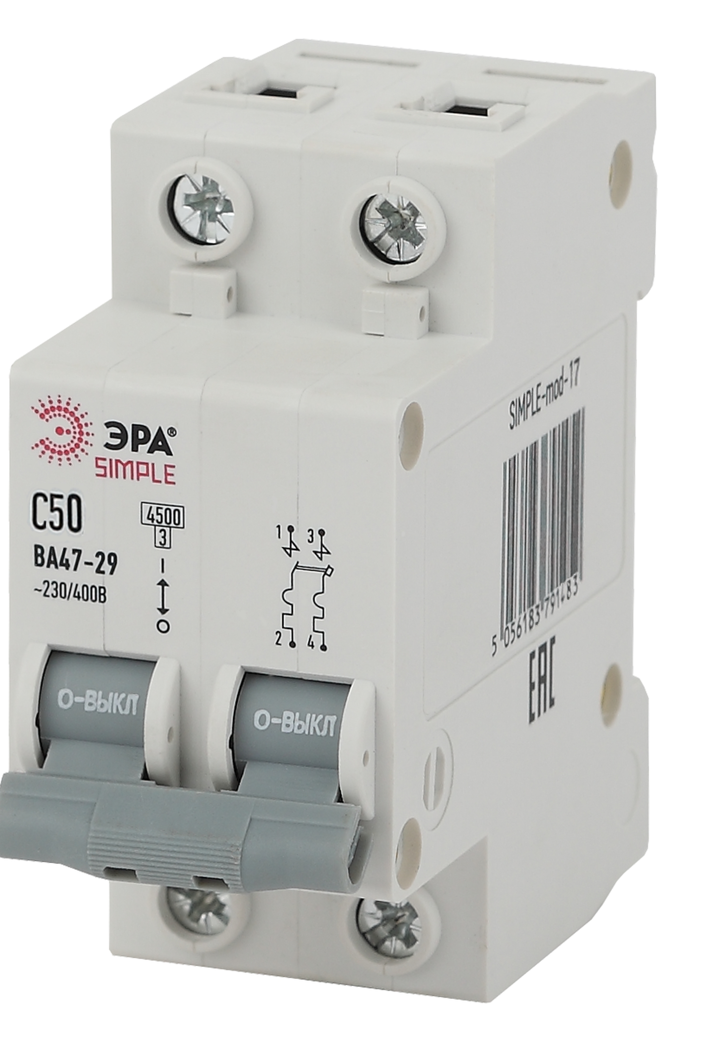 Выключатель автоматический 2-полюсный (2P) 50А хар. C 4.5кА ЭРА (Энергия света) _ Б0039234
